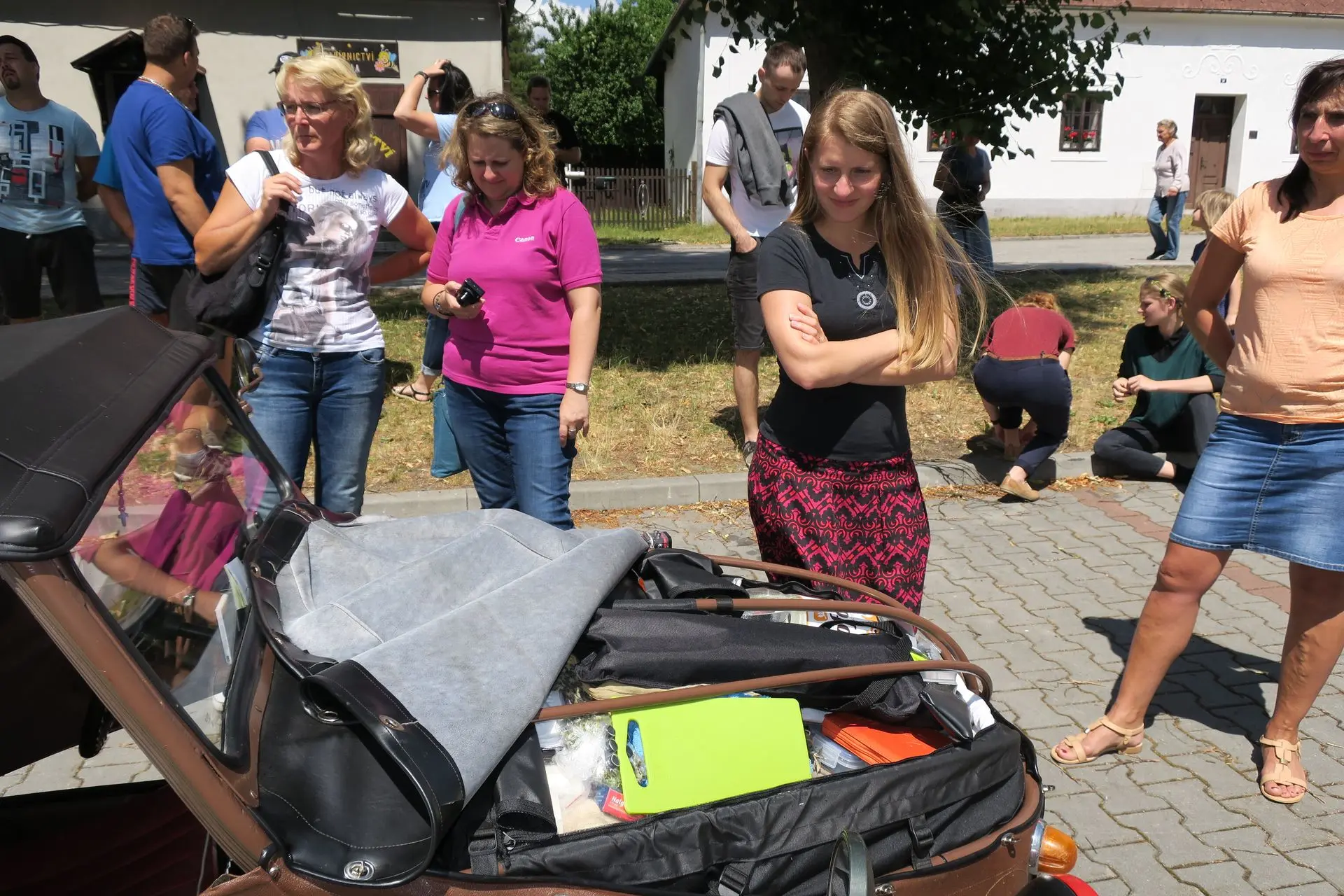 Na odjezd jsme připravili nejen Velorex, ale i sebe. Aby ten odjezd byl fakt slavnostní, tak jsme se hodili do gala, do svatebního. Někdo si pořídí svatební šaty a má je jen jednou na sobě a pak mu visí ve skříni. Já je tedy využívám, co to jde.
