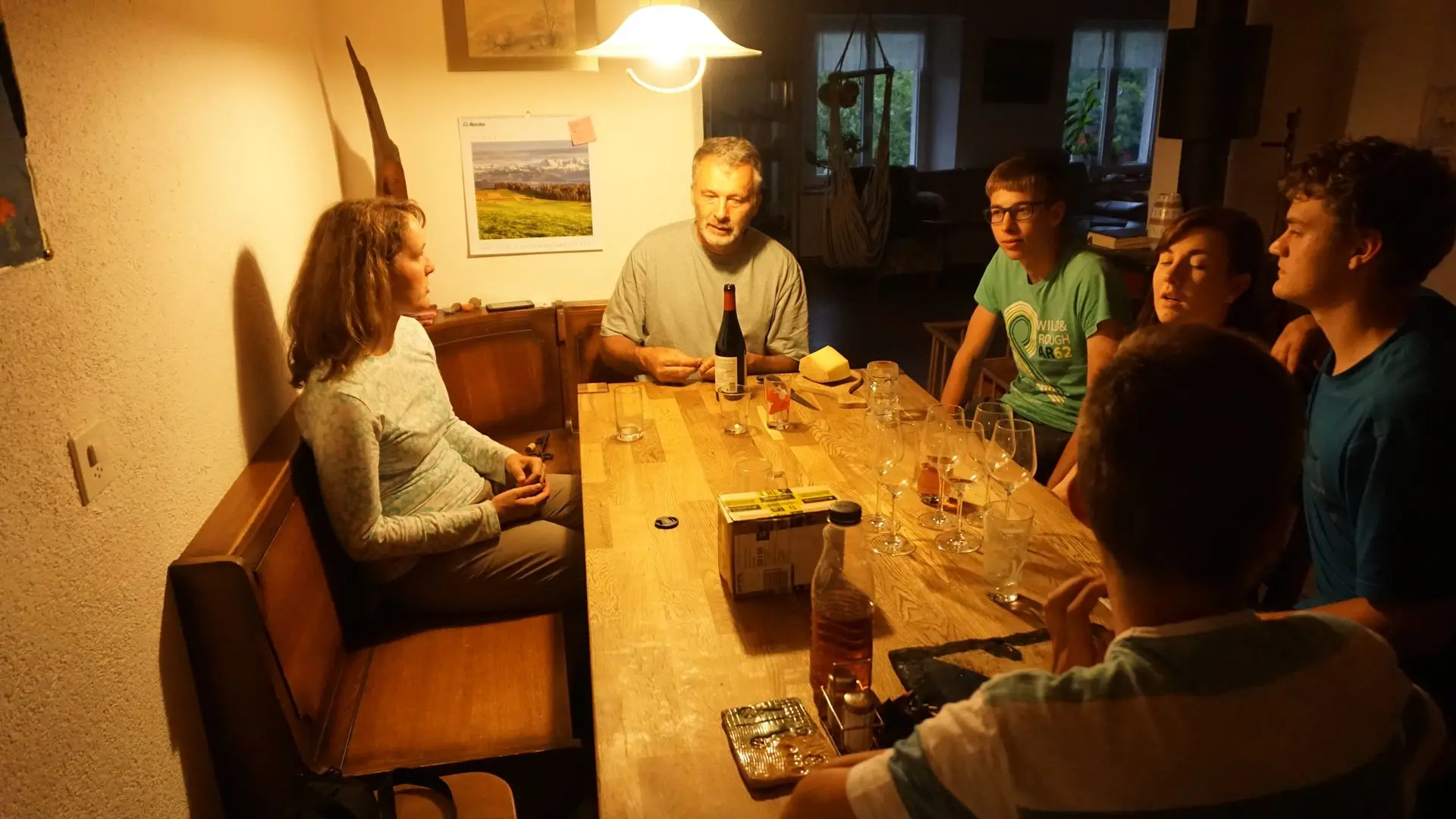 Ale i tak jsme dorazili do Švýcarska přes hraniční přechod Kolbenz. Na hranici stál celník, ale nic nechtěl, jen každého pozdravil a ukazoval, ať jedem dál. Tak nevím, co bylo jeho prací, asi zdravit turisty. Dlouhou dobu jsme jeli podél Rýna, je to pěkně široká řeka a silná, i z dálky bylo vidět, jak se v proudu dělají víry. Nechtěla bych tam tedy jet na lodičce nebo se topit. Už jsme se blížili k cíli a asi 5 km před koncem byla uzavírka a objížďka. Jenže objížďka nebyla moc dobře značená, takže jsme trochu bloudili, ale nakonec jsme se dojeli. Bylo půl 10 večer, takže docela tma, ale trefili jsme a byli jsme dokonce očekáváni a kluci nám doslova vyběhli vstříc.
